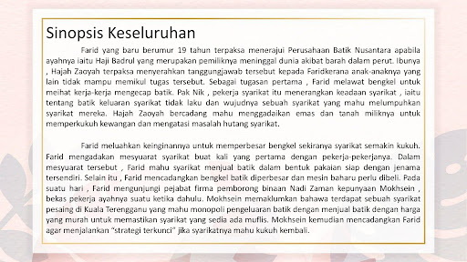 Sinopsis, tema, persoalan & pengajaran sebagai rujukan untuk semua.